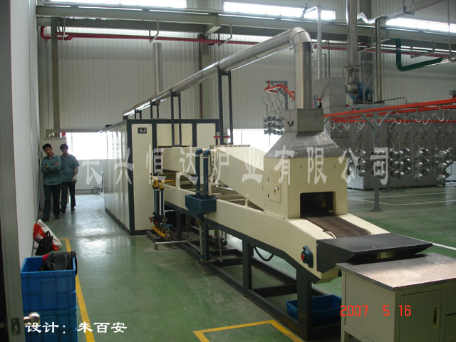 該設備由傳動機構(進料段)、預熱段、加熱爐體、冷卻段、從動機構(出料段)、水路氣路控制系統(tǒng)、電氣控制系統(tǒng)及液氨分解爐等組成。